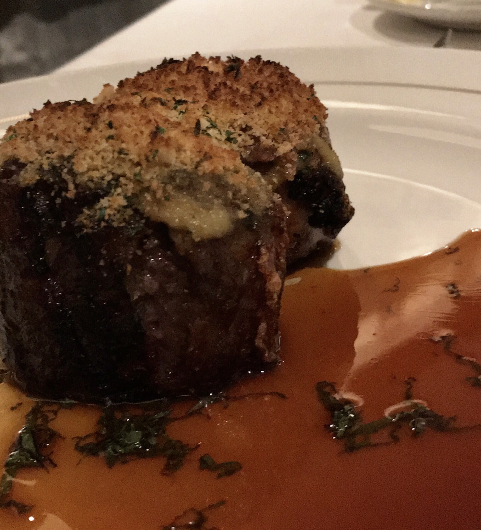 Jerry had lamb medallions and I had eggplant Parmesan which in Keller-land is more like ratatouille which always reminds me that Keller’s kitchen was the model for the cartoonists who did the restaurant action in the movie Ratatouille. His ratatouille in the movie is more like confit biyaldi. Nothing is what is seems, but this was delish, which is enough.