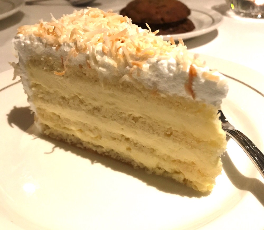 The best thing was, as I knew it would be, the seven layer coconut cake. I craved it all through our last cruise and as I wasn’t having any tummy issues then I must have eaten five pieces (along with ice cream, multiple times a day, in addition to other assorted pastries and sweets.). This time I am being more careful of my diet and that cake was my prize. Moist, ethereal. A coconut cloud of a cake. Took a third pig pill to make sure I didn’t pay for it later.