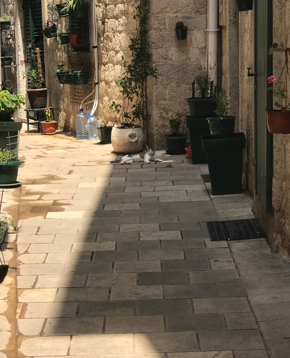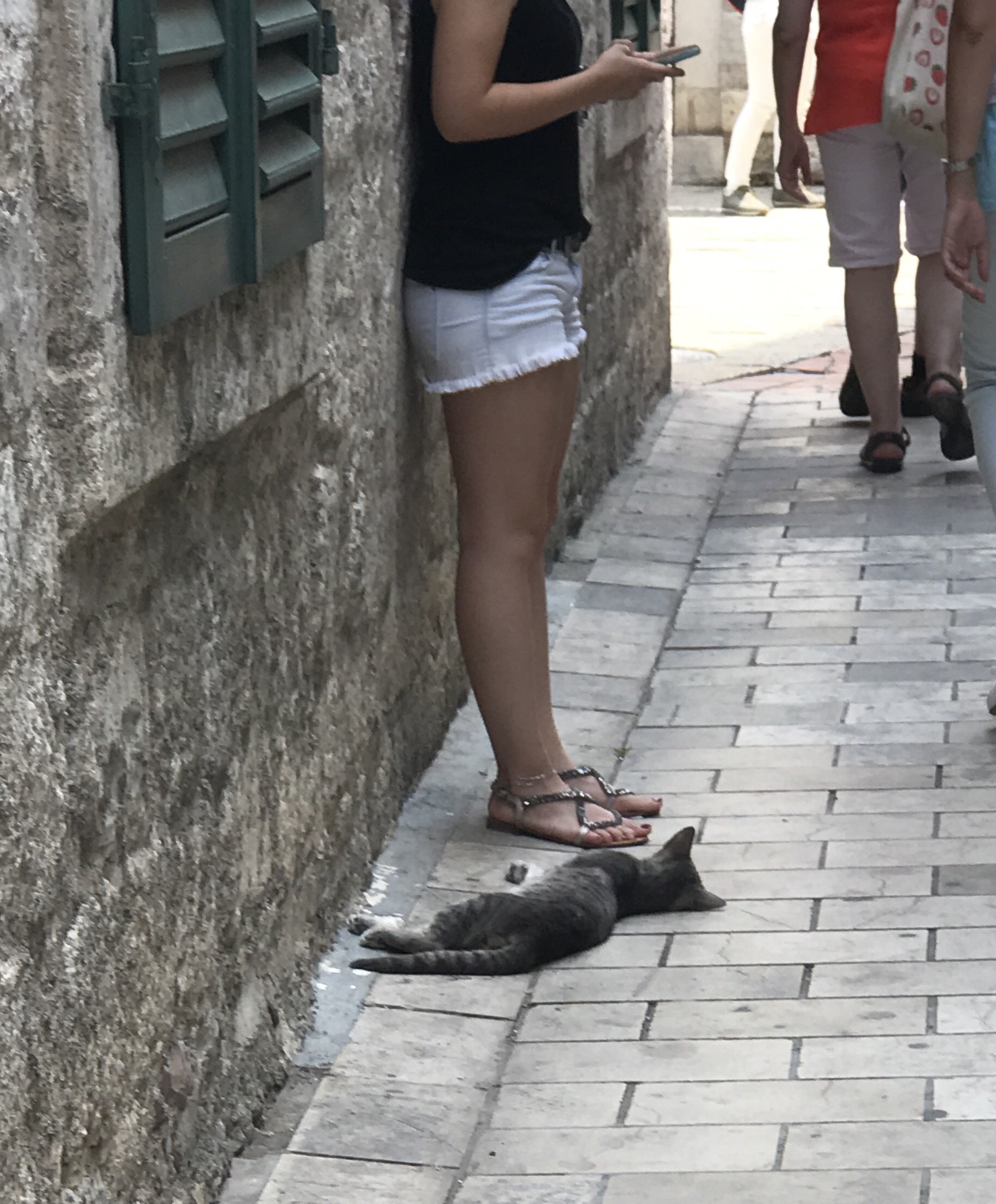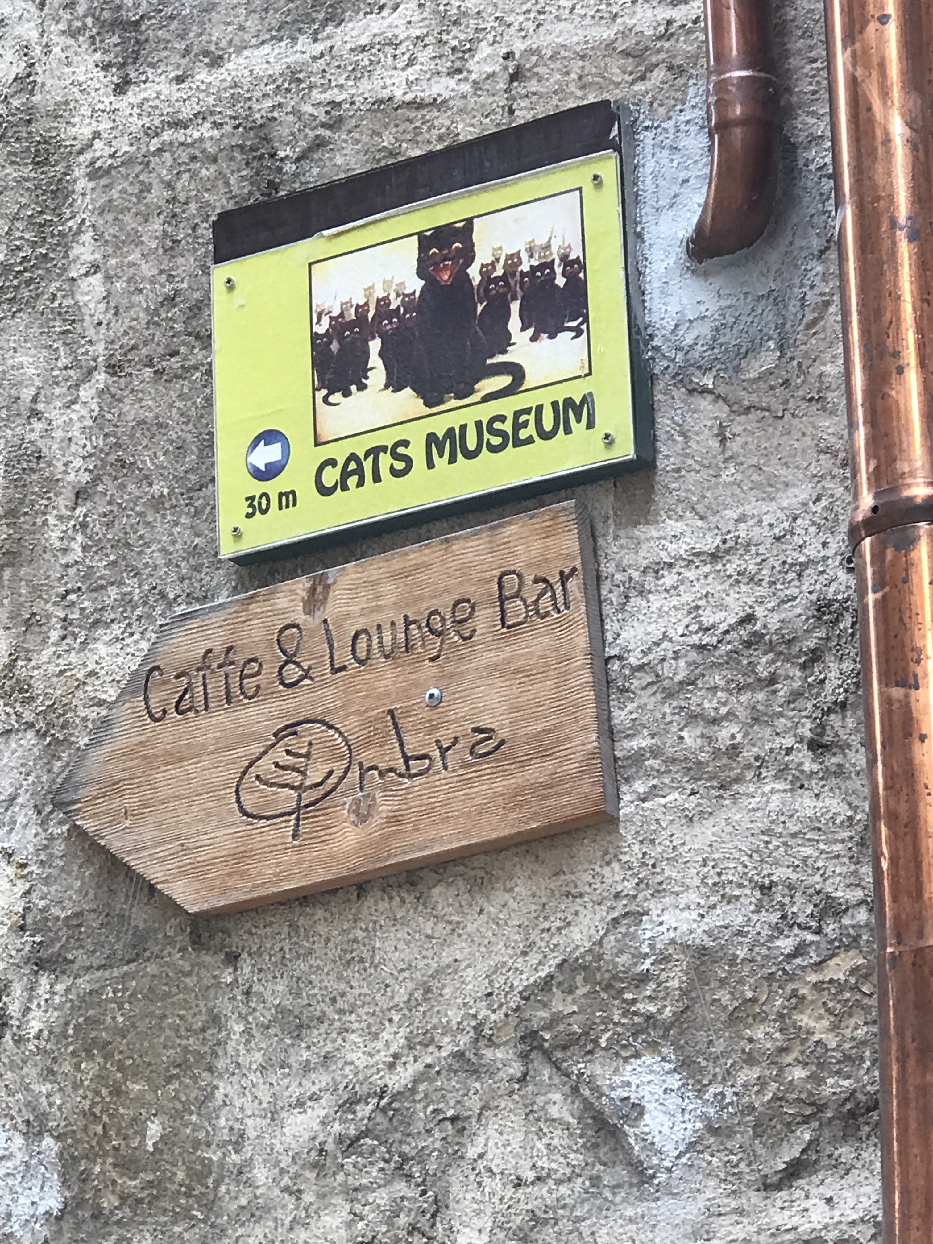 There was a cat museum, dedicated to cats. Many shops sold cat teeshirts or funny cat cards and had cat food bowls in front. Cats lounged around the town pretty much as though they owned it. And pretty much they did. They lay in the sidewalks and the store doorways and people carefully stepped over and around them.