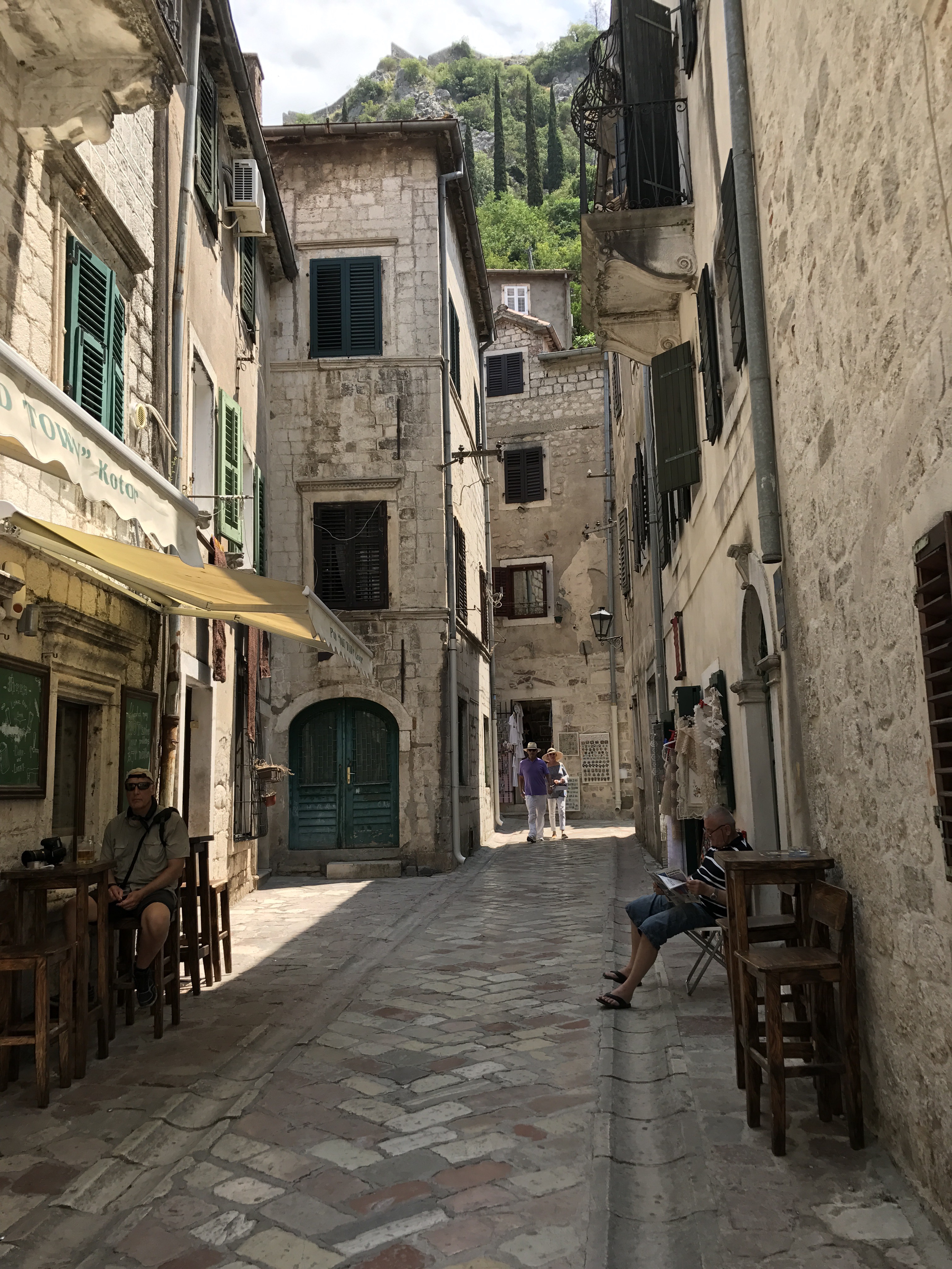 The other day when I listed the reasons I like to cruise, I started a list in my head of reasons why I don’t. One of them was forcibly visited on me today. When a ship arrives in port, it disgorges all its passengers who care to get off. If the port is a large city — say Barcelona — the crowd is absorbed. If it’s a little city, like Kotor, then suddenly the place is wall to wall tourists. Since two ships arrived at the same time today it was nuts. I am sure Kotor is a beautiful place when it is empty. On the other hand, the locals tell you they depend on the tourists. Come the winter the place is empty and the money dries up. Complexities of life.