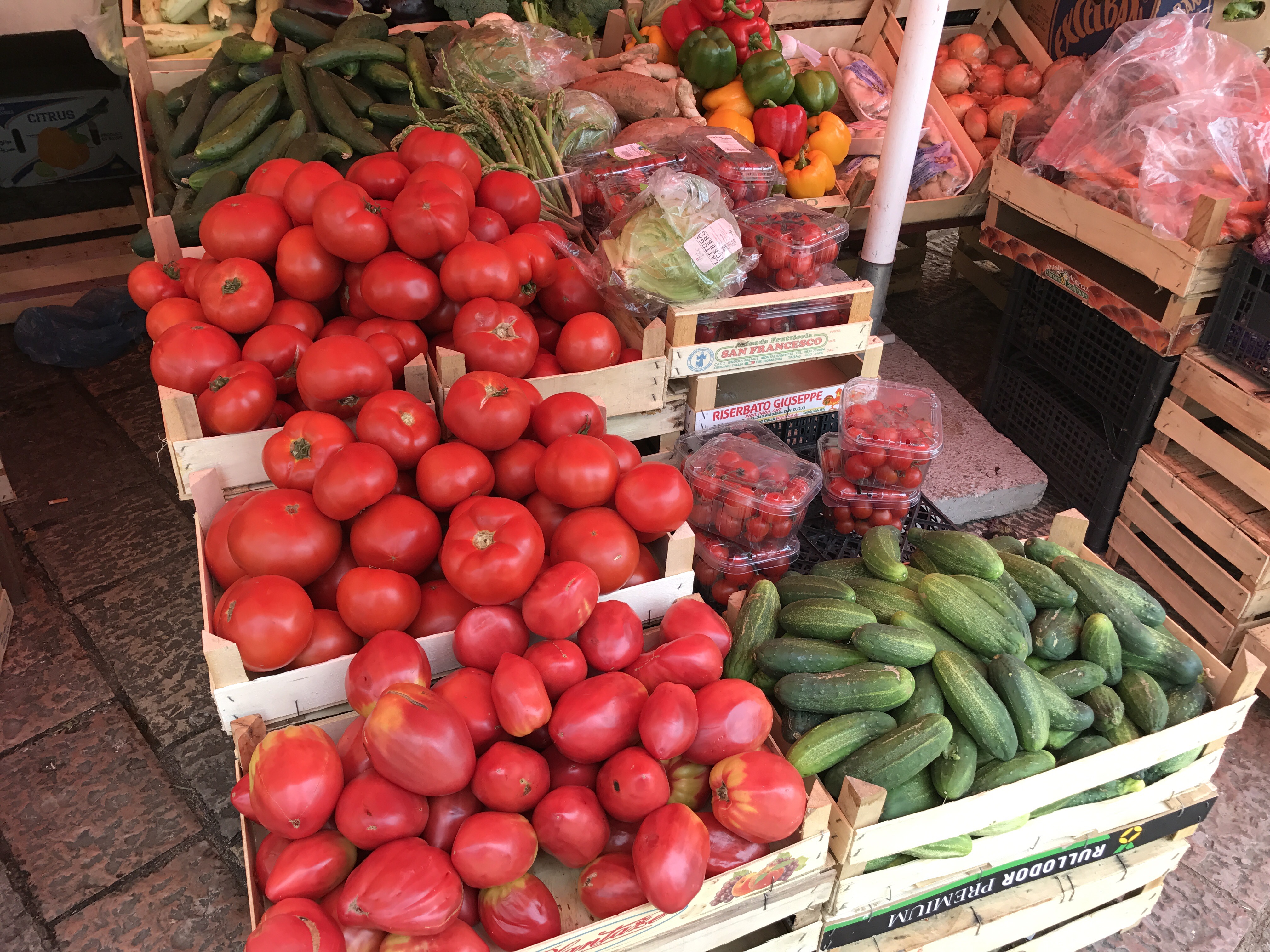 I had searched out a lunch place ahead of time and fortunately it wasn’t inside the old city walls that held the heat like an oven. We strolled round the harbor and walked past a market with some of the most stunning produce I have seen.