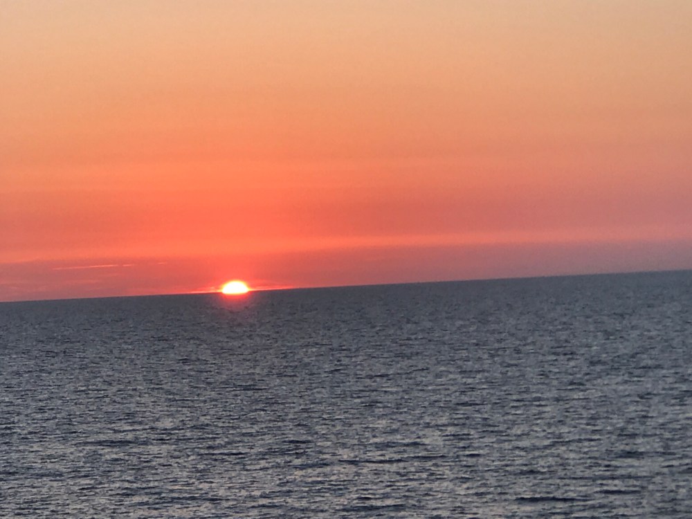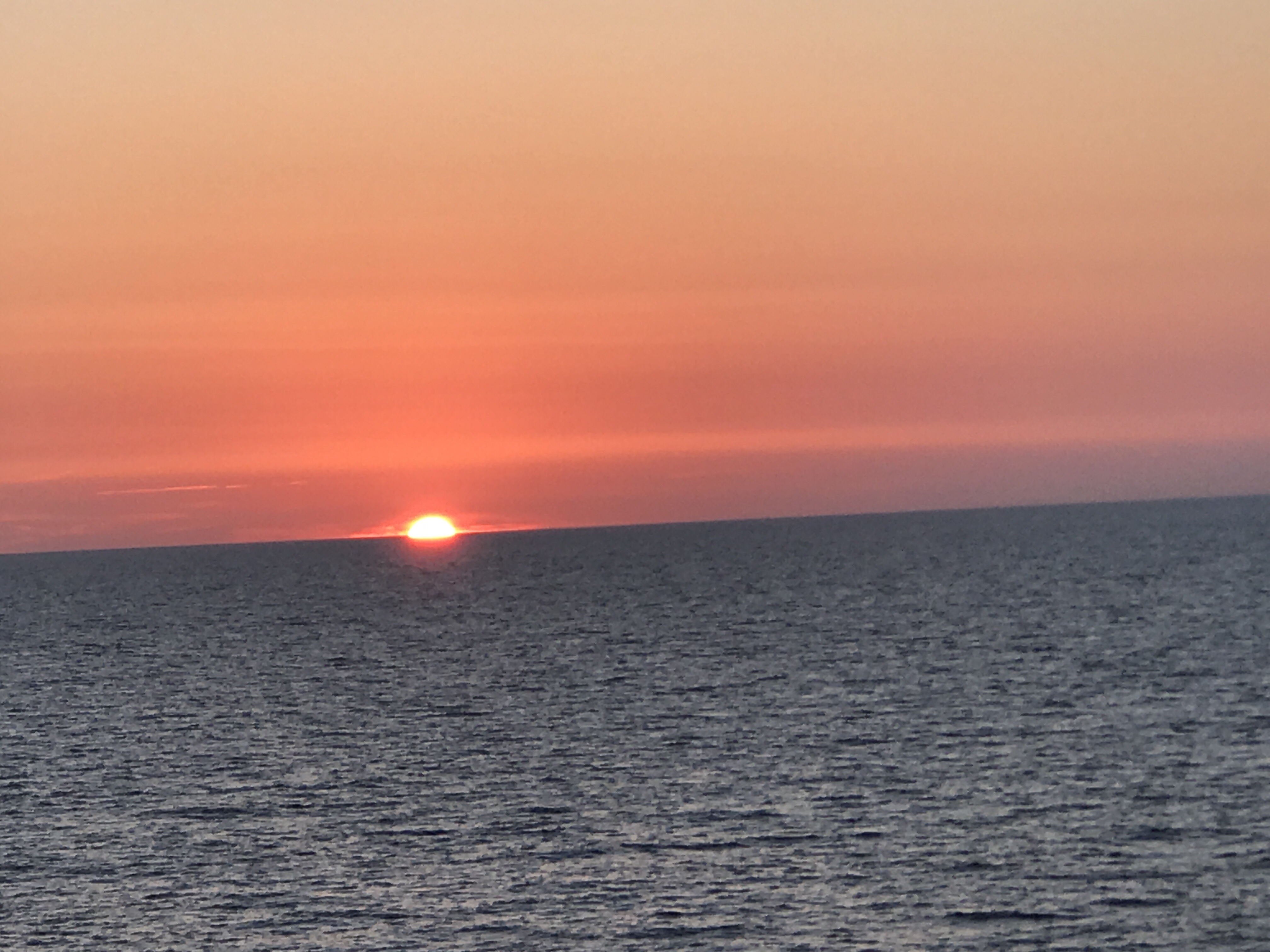 We stuck to the balcony at dinner time and ordered room service. I had chicken consommé and half an omelet with plenty of pig pills. We sat and watched the sun set and the moon rise and it was about as perfect an evening as you could have.