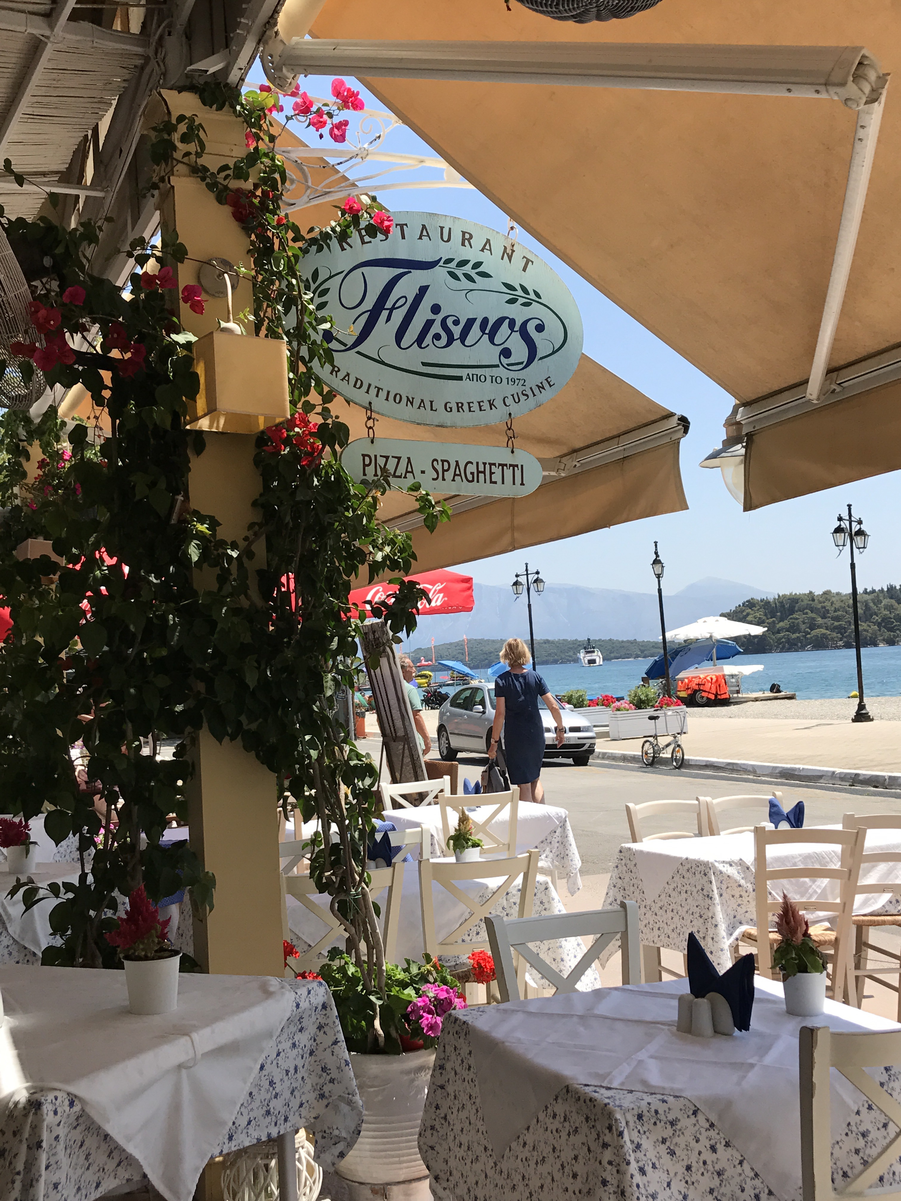 The restaurant we were aiming for in Nidri didn’t open til dinner but a lady at a place a few doors down recruited us as we walked by and as the place looked pretty, we said sure. Solid grounds for a culinary decision.