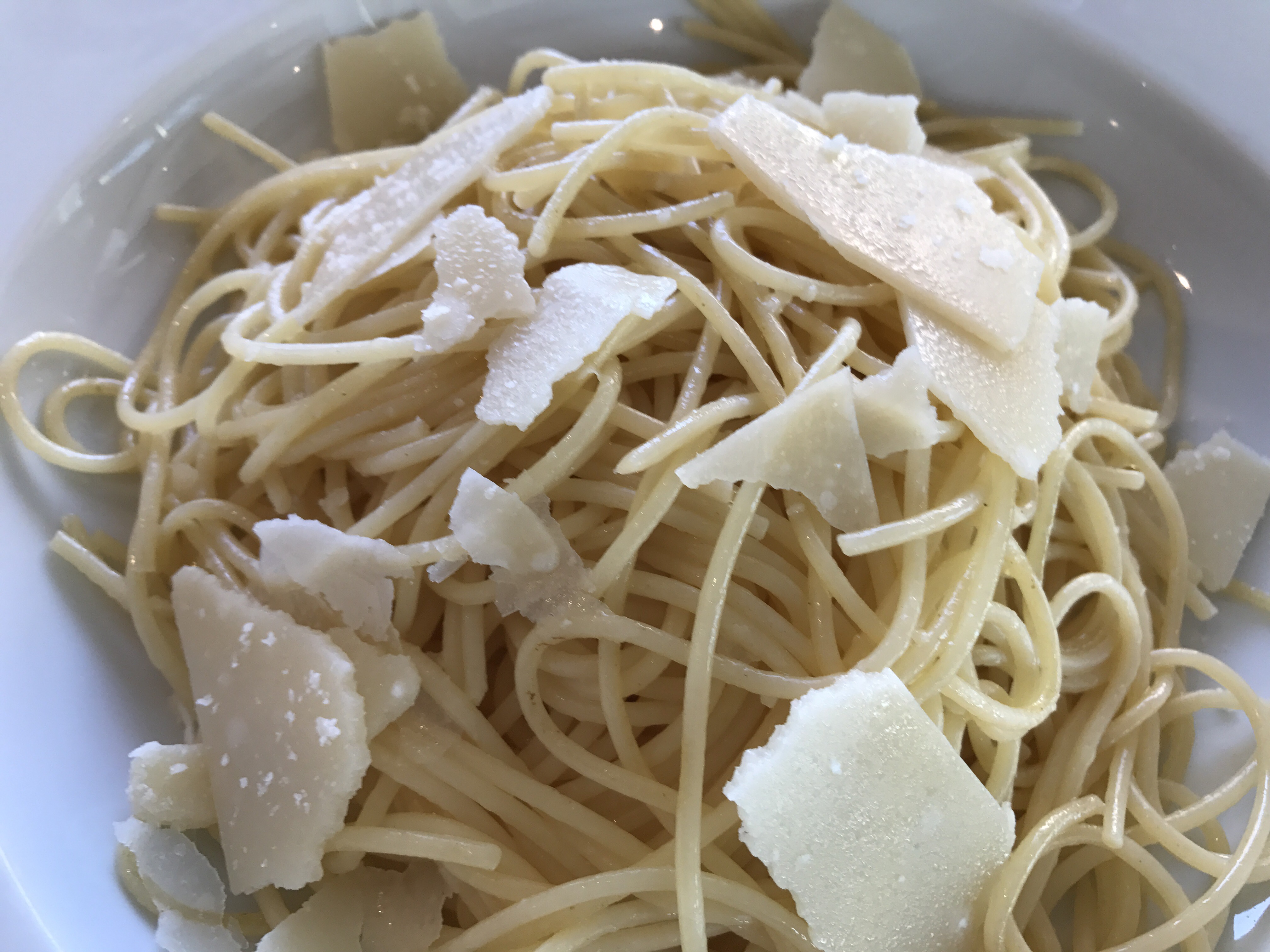 Dinner was simpler. We weren’t really hungry and there was nothing on the menus I was dying to eat so we went back to The Patio where Jerry had salmon and I had the pasta carbonara, hold the carbonara. Really, you can do that.