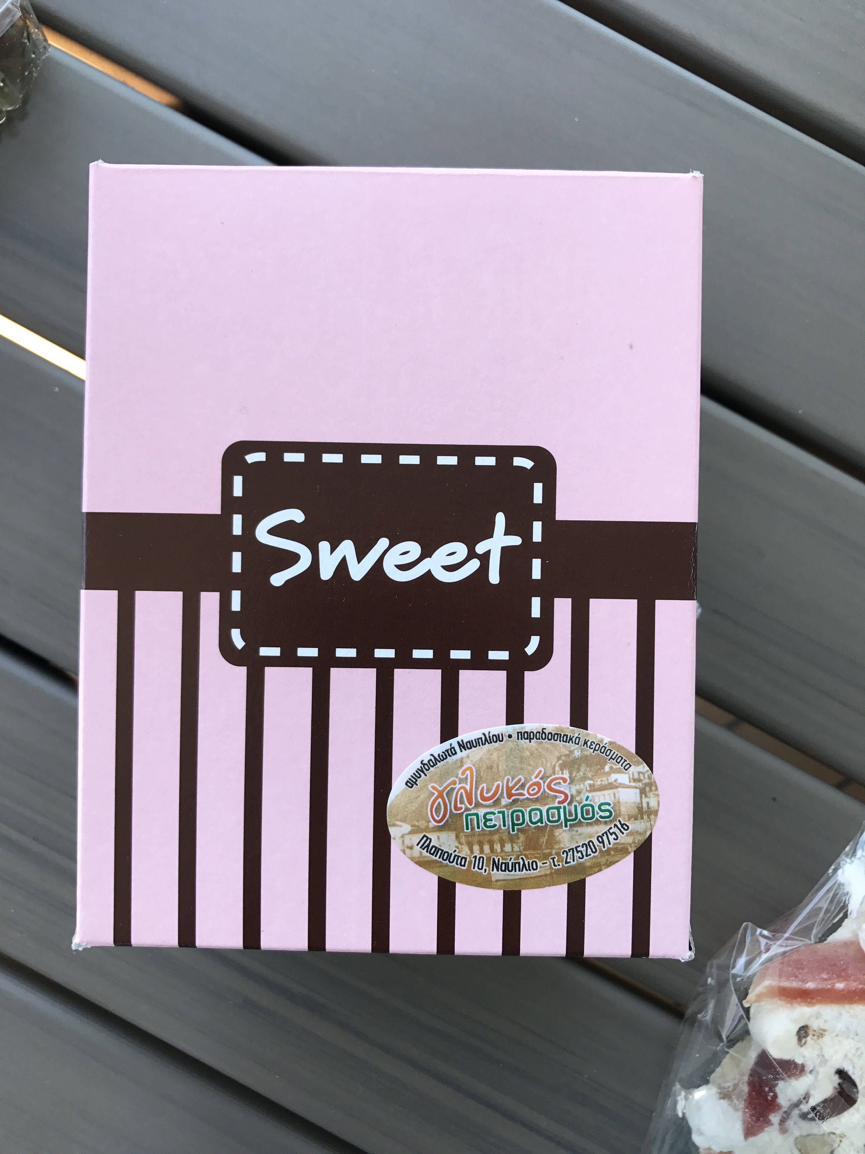Since I was in the suite working and reading and not particularly hungry, I decided to open the stash of Greek pastry we acquired in Nafplio.