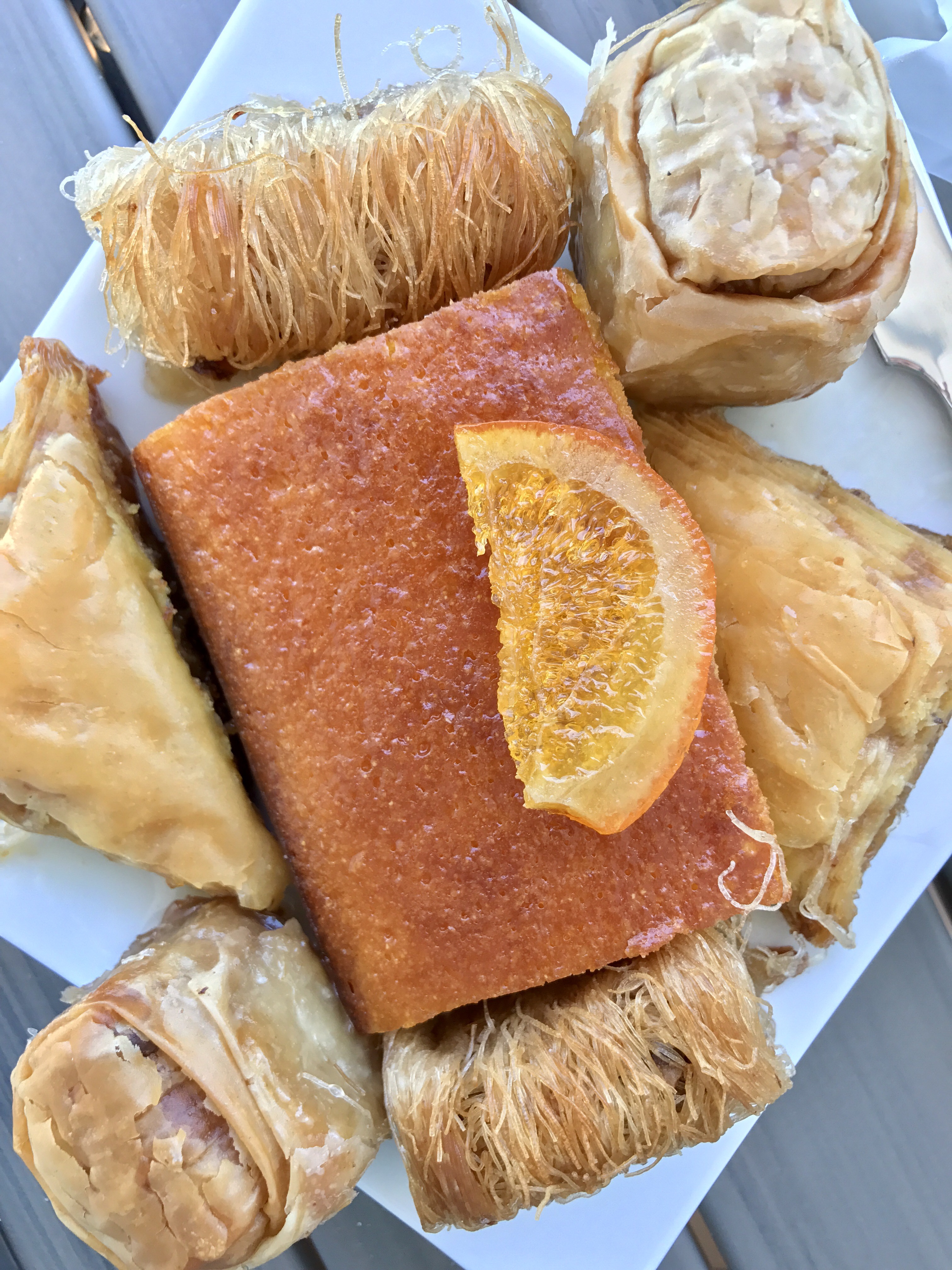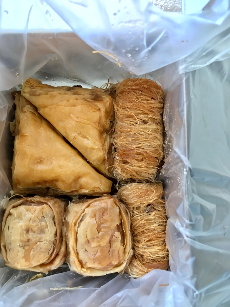 But the Greek Baklava was crispy and full of walnuts and honey, the Kataifi was chewy and crunchy at the same time (and full of honey), and the third thing which I don’t have a name for was, you guessed it, also full of nuts and honey.