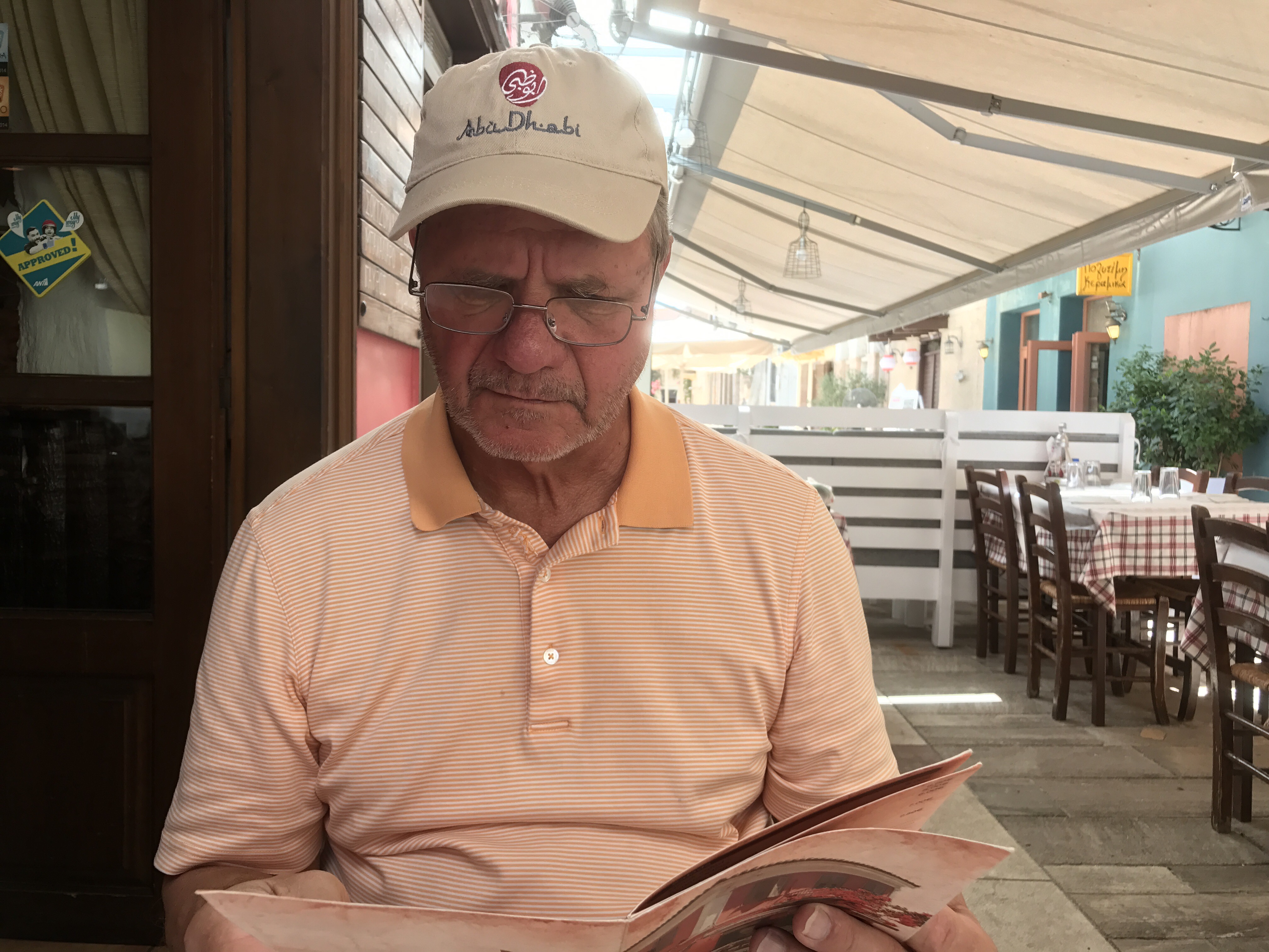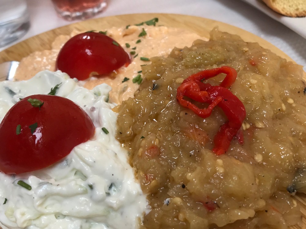 And then there was lunch. We decided to try To Omorfo Tavernaki, down a side street off the main boulevard. They had three fans pointed at us as we sat outside but it was still HOT. Blowing hot air around does not necessarily cool things down.