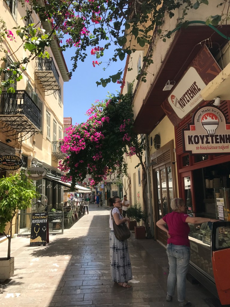 Today it was just as hot but we were in Nafplio and I wanted to see it. It’s a port town that was the capital of Greece (1829-1833) before Athens was the capital of Greece, it’s been conquered by everyone under the sun so there is lots of interesting architecture, and it’s a lovely place to visit.
