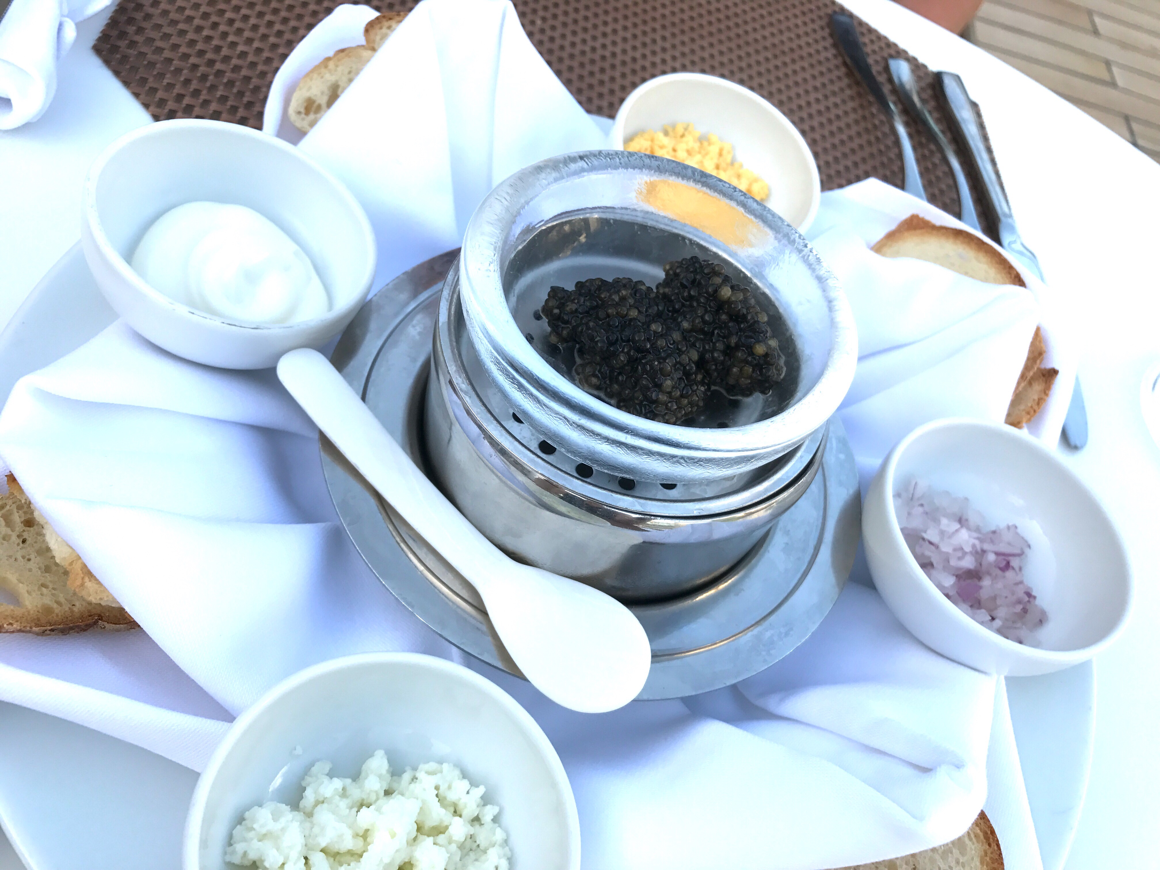 So we skipped it. Put on light and breezy casual clothes and headed to our favorite table on the Patio, out of the sun and full on in the breeze. It was perfect.