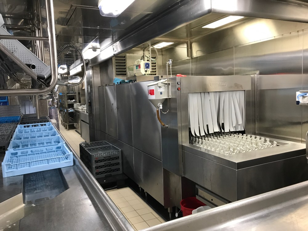 Just past the bins is the dishwashing section — a good place for the tour to begin, says Kurt, as most chefs’ careers begin in the same place, an essential learning stage if you want to run the entire kitchen someday. It’s a huge space on the ship and we were introduced to the monster that completes an entire cycle in 2.5 minutes.