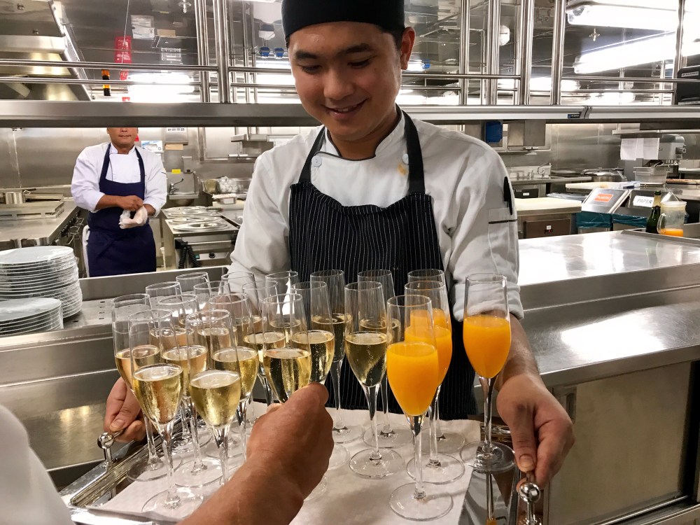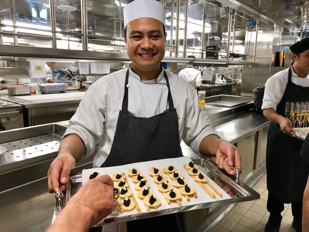 The tour has been fascinating. We’ve been plied with caviar and champagne. We’ve learned how dinner gets served, what happens when the kilos of fresh pineapple you’ve ordered for a cruise are not ripe, and the process of designing a kitchen from scratch for a new ship, and what happens when things go wrong and need to be fixed.