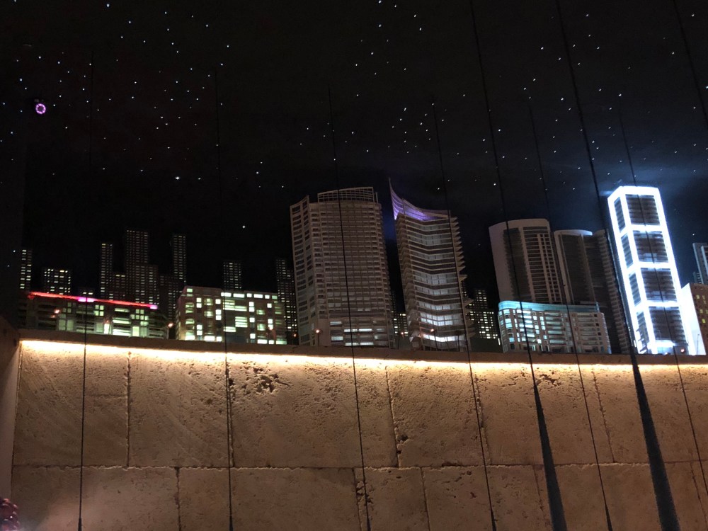 Then there were the main courses — always a mistake when you order an extensive meze, but what could we do? They took us inside (the restaurant is gorgeous, starlit ceilings just over a 3D replica of the Beirut skyline running along the top of the walls!).
