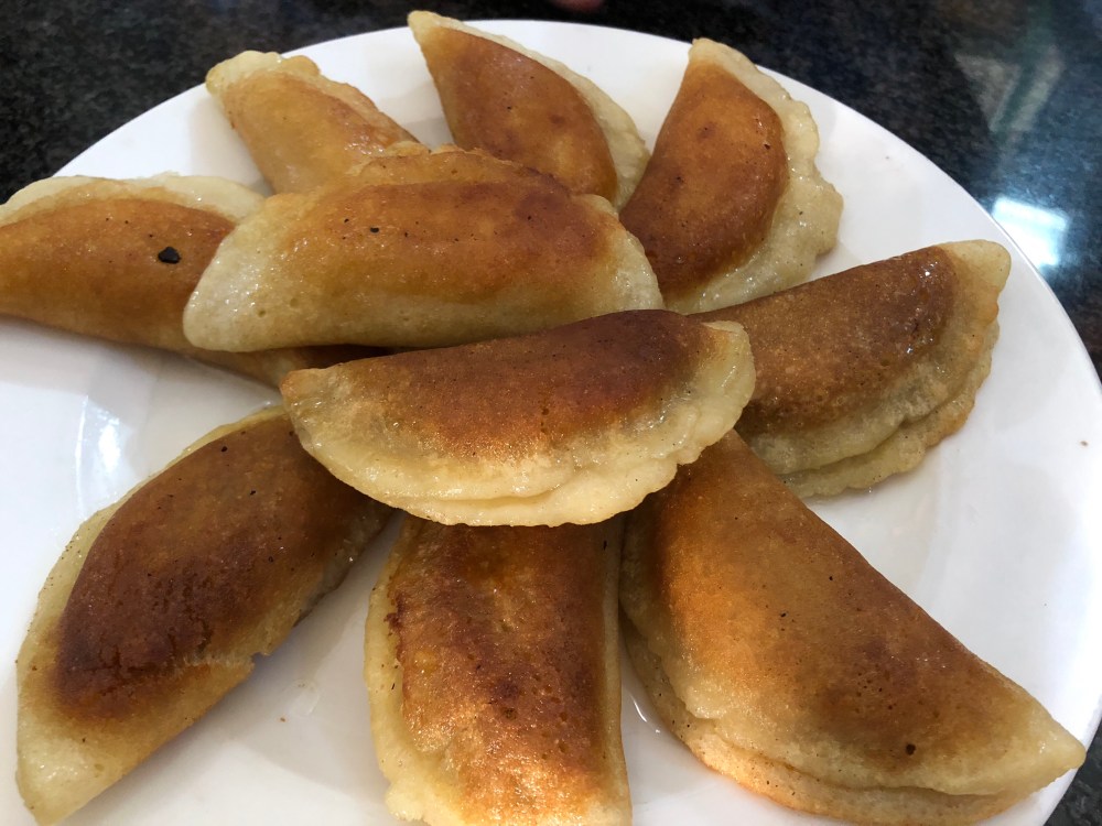 Kneffa (with ice cream, not pictured) and me eating it. Amazing dessert!