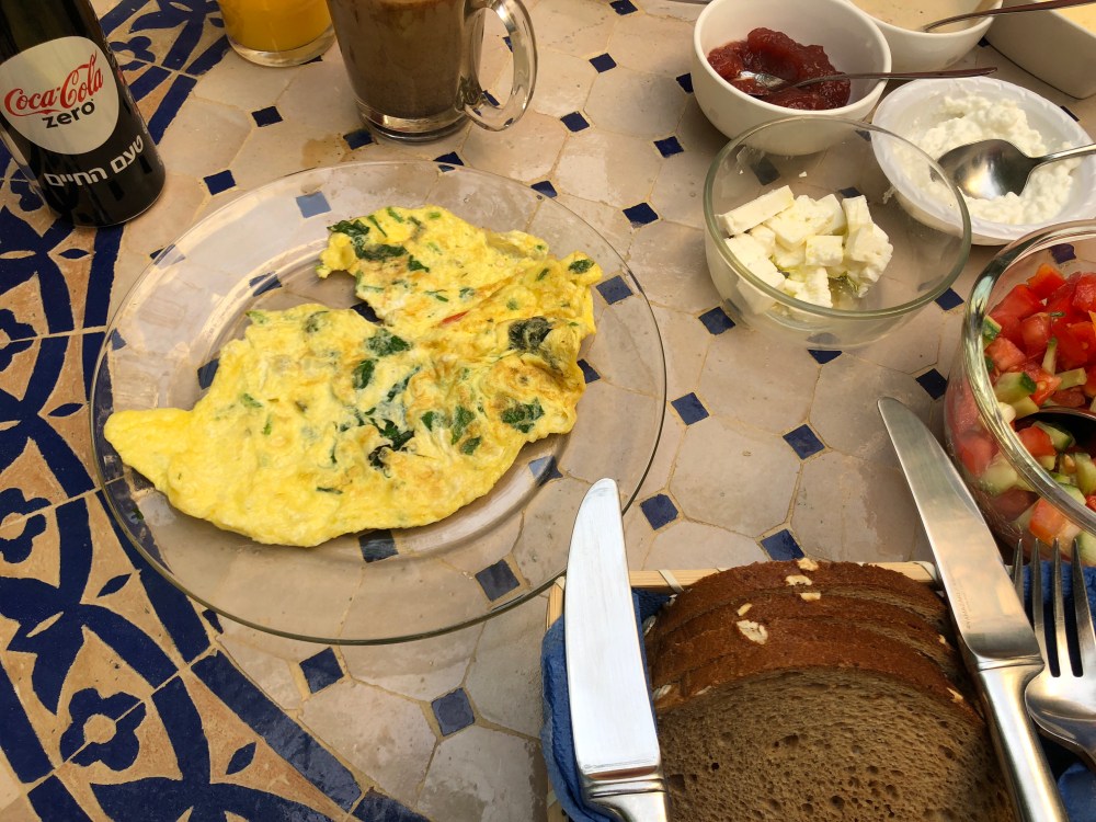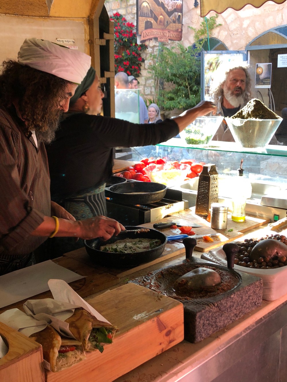 A couple of hours drive brings us to an ancient B&B in another charming and layered town called Tzvat. Generous and lovely breakfast in the courtyard.