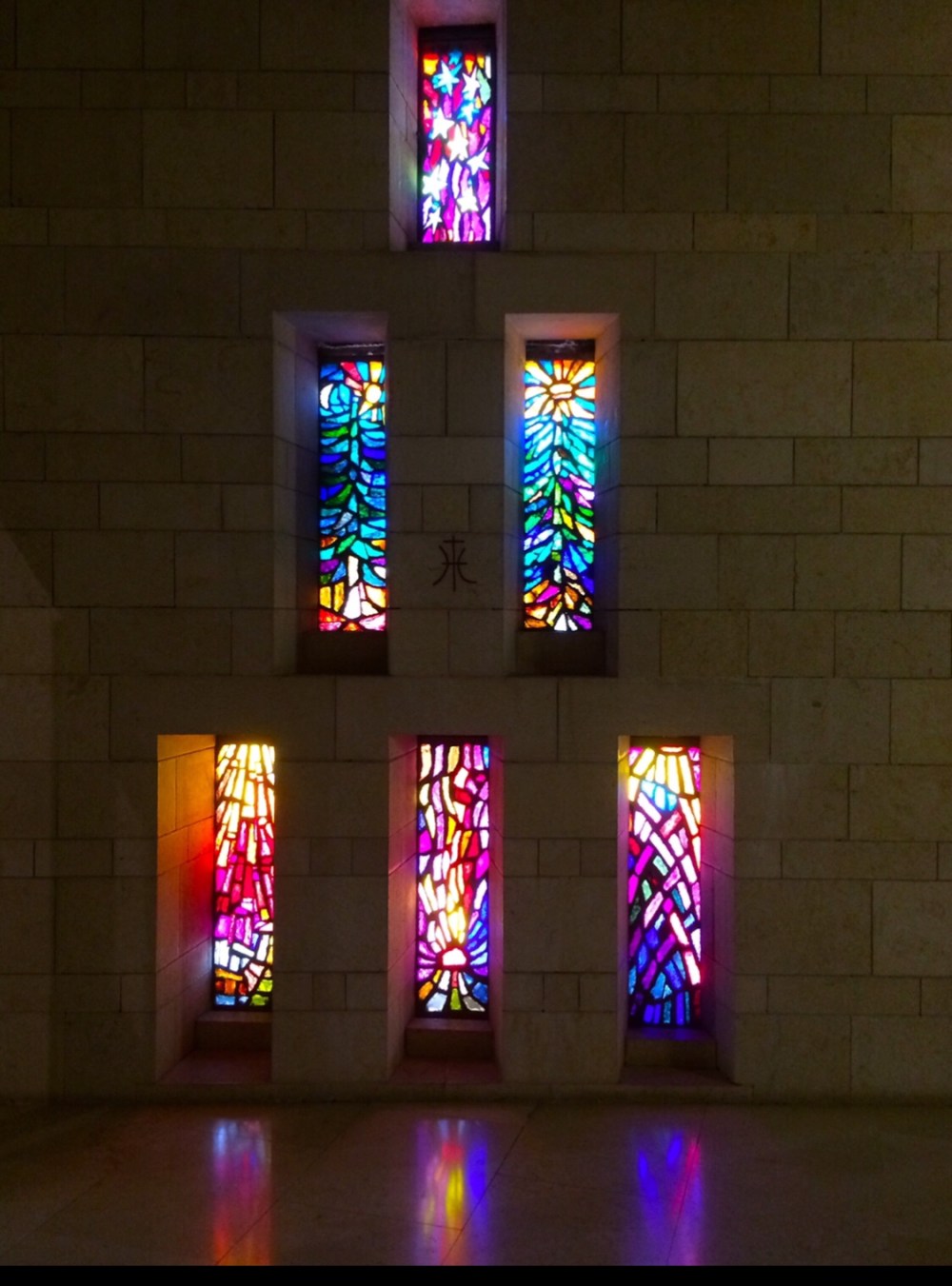 The Church of the Annunciation is spectacularly beautiful, with mosaic representations of Mary and child from countries around the world. The rich, pure colors of the stained glass windows in the church make me weep at their glory and light.