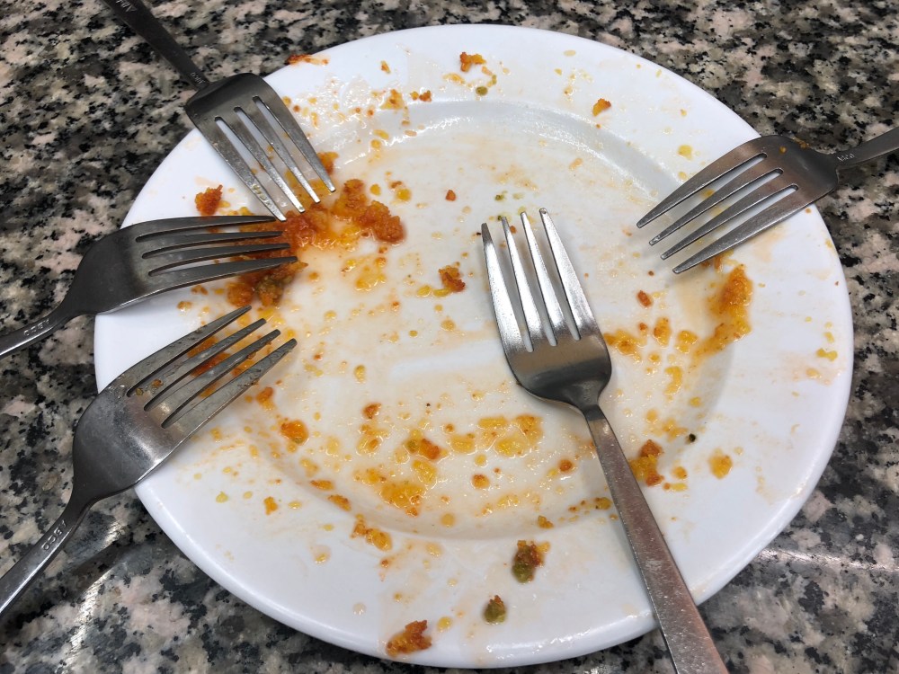 Only two of us were going to eat it, but they gave us five forks. All were put to use. Damn it.