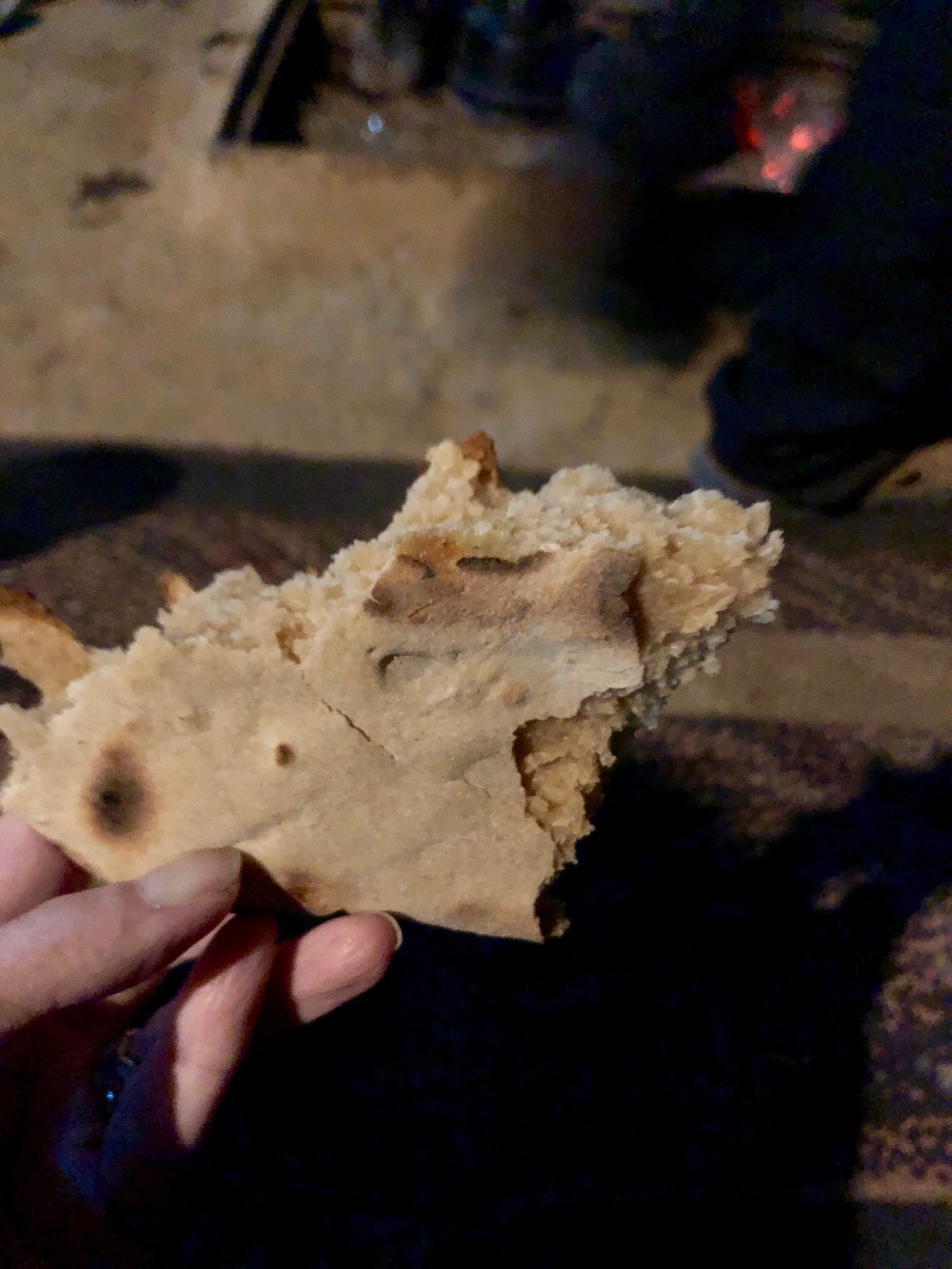 He also made “man’s bread” — a hearty loaf that men make over a fire in the desert when they are traveling. They shape dough into a flat cushion, and bury it in the embers of the fire where it bakes, covered in fire and ash.