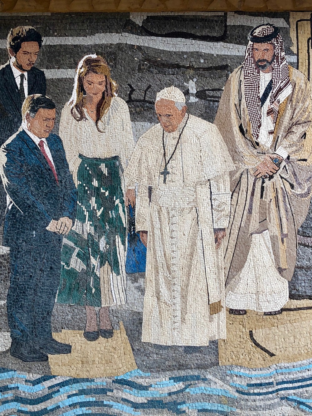 Fewer than five percent of Jordanians are Christians, though the country is home to some of the oldest sects, so the rash of church construction is clearly designed to draw pilgrims. There is more than one prominent mosaic of King Abdullah II meeting the Pope (including one in the “Pope Mobile,” not shown.)