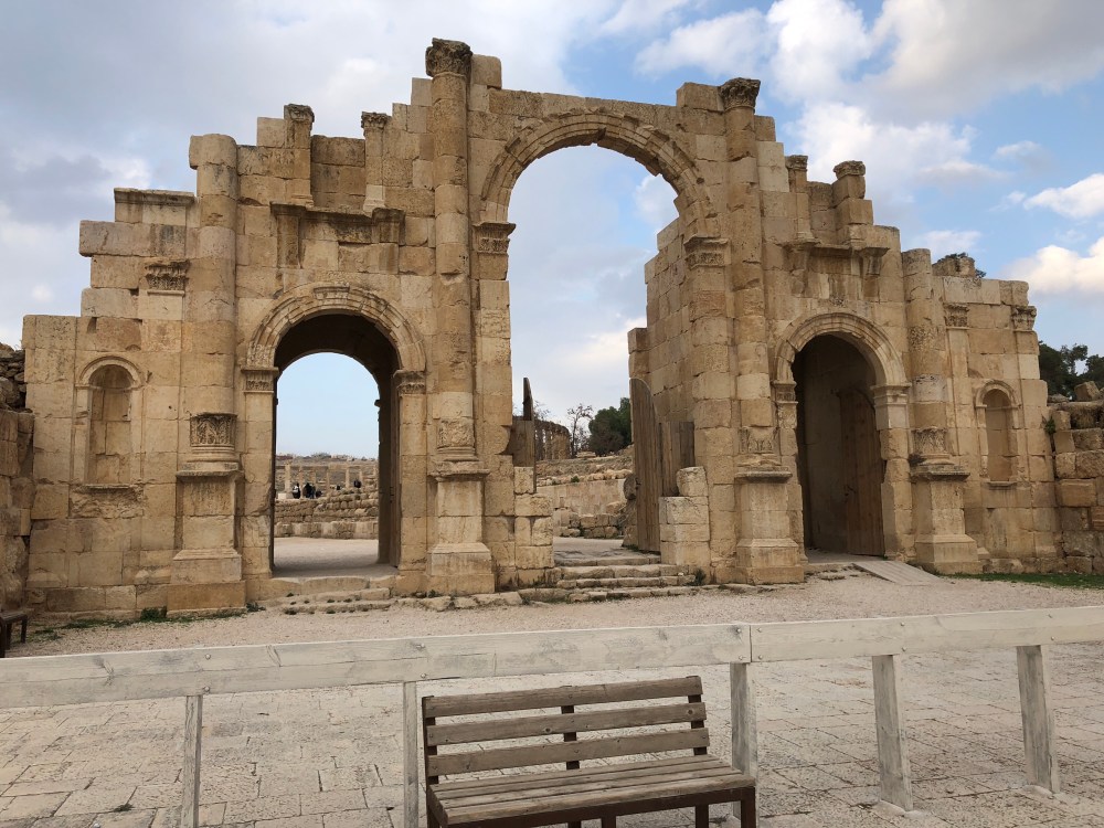 After hitting the WC, where we tip a guy for handing us tissues to sub for toilet paper (something most Jordanians eschew in favor of a blast of water from a conveniently located hose and nozzle) and then for paper towels and then for spritzing our hands with some exotic spray that I imagine perfumed the harems of rich and powerful men, we head out to see Jerash.